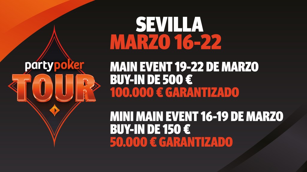 PartyPoker vuelve a poner el póker en vivo en modo gira. Su nuevo PartyPoker Tour 2026 ya está “on the move” y, dentro del recorrido europeo, España gana peso con tres paradas: Casino Admiral Sevilla (16–22 de marzo), Casino Gran Vía Madrid (11–17 de mayo) y Orenes Murcia, que se acaba de anunciar (30 de noviembre–6 de diciembre).